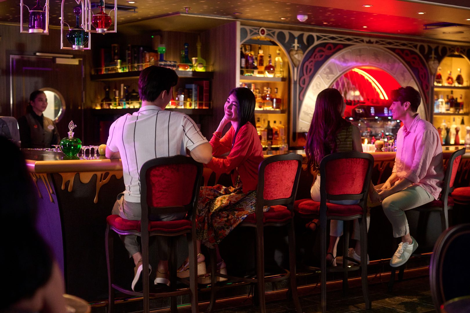 Inspired by the Queen from Disney’s “Snow White and the Seven Dwarfs,” Spellbound on the Disney Adventure is a mysterious bar with an array of wickedly tempting “potions.” (Disney)