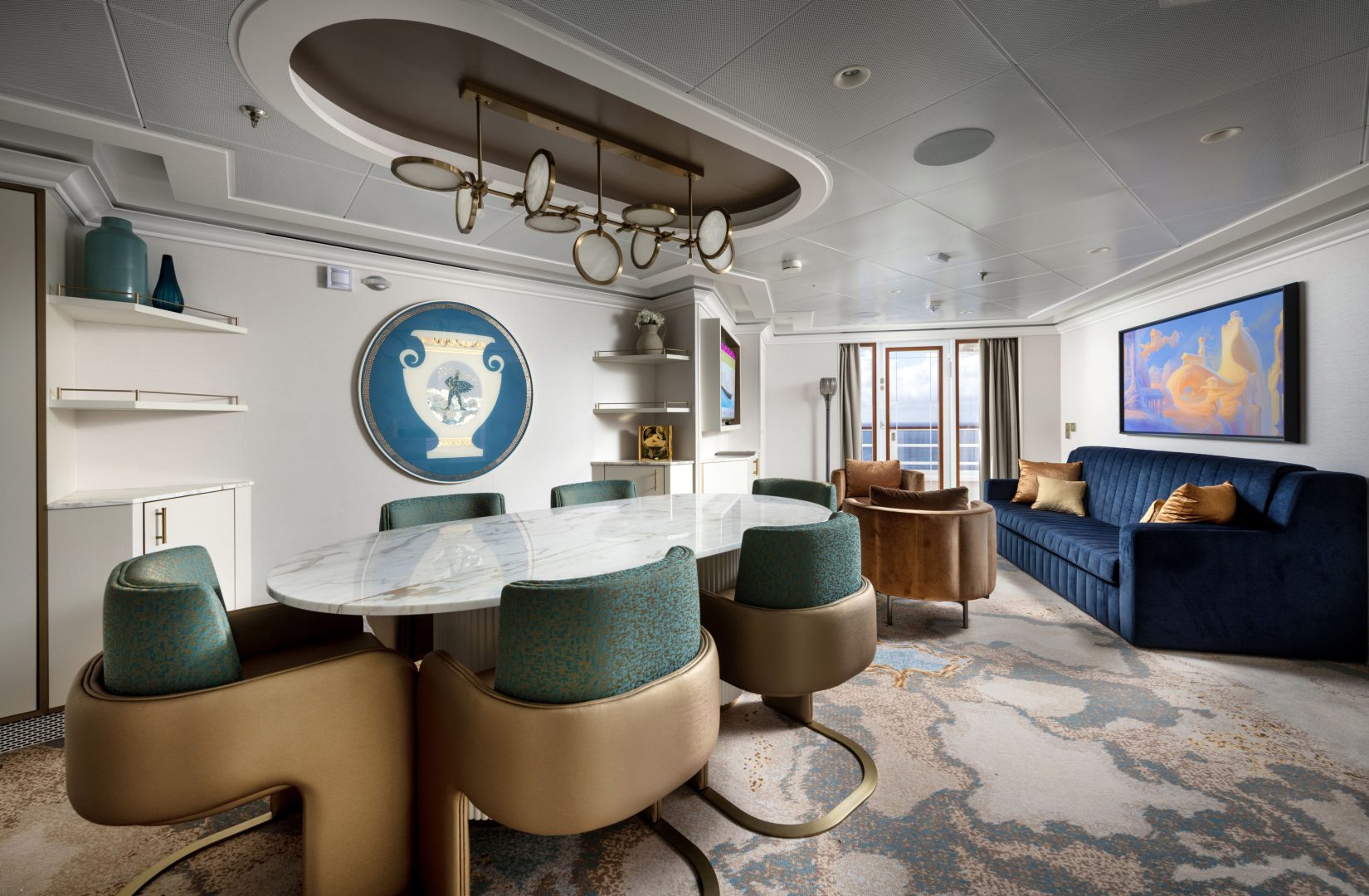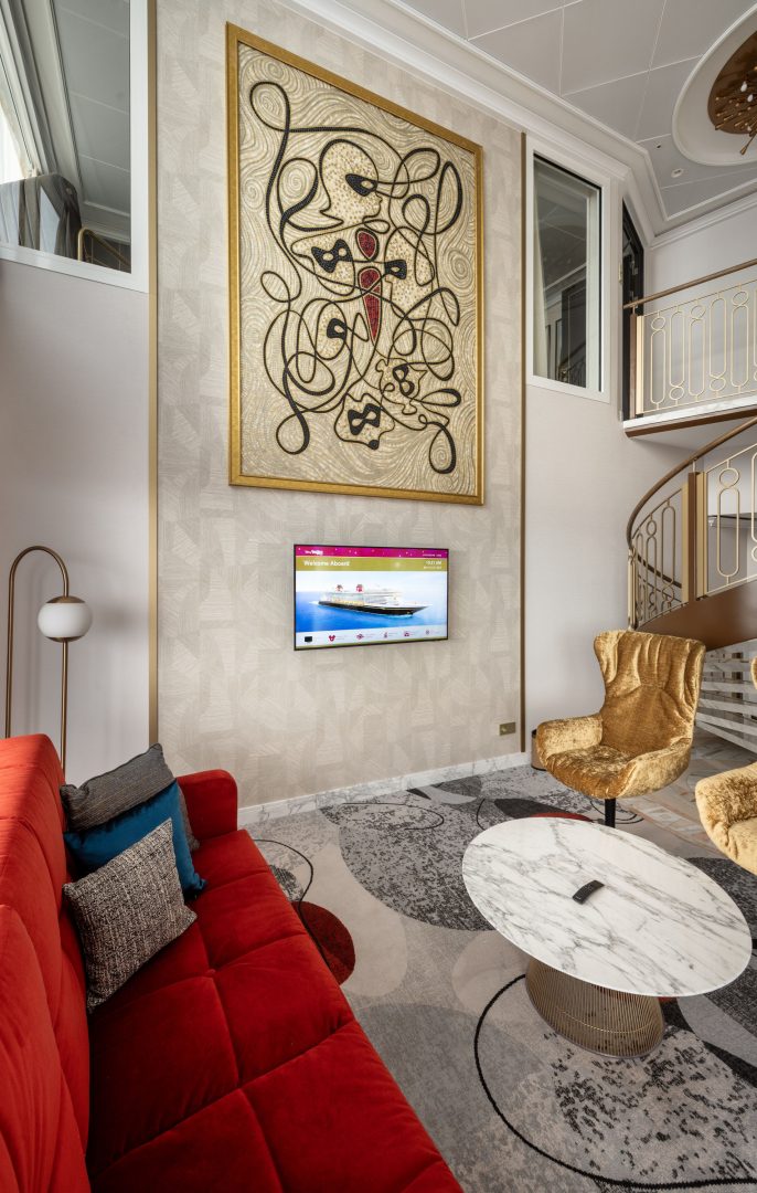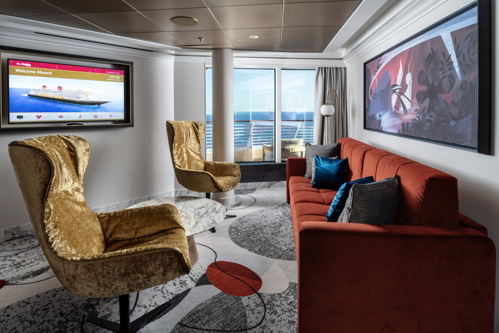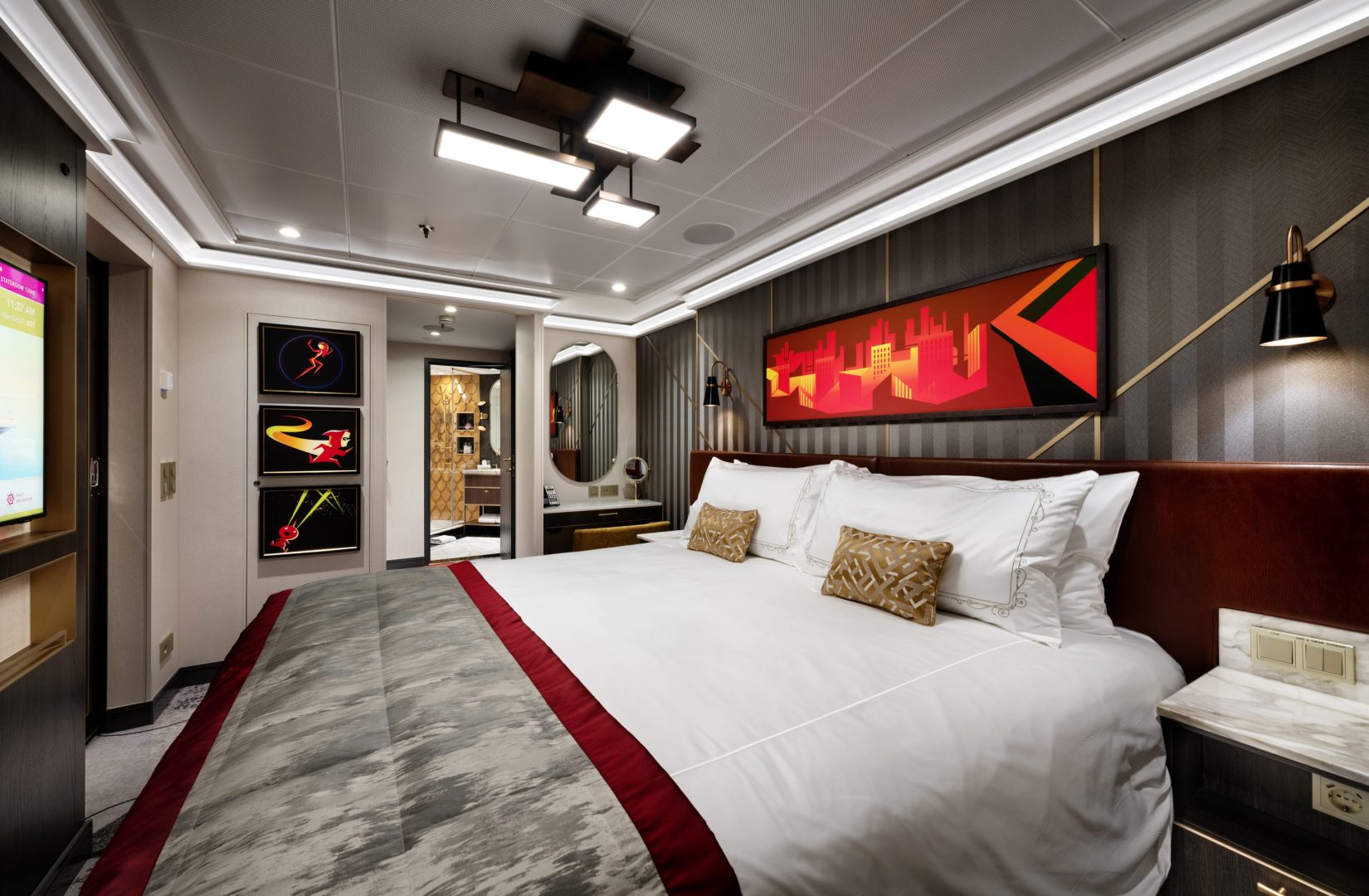 In royal suites of heroic proportions, guests on the Disney Destiny are empowered by epic stories to embrace their own destinies. The IncrediSuites invoke the exhilarating exploits of “The Incredibles” through a mid-century modern aesthetic inspired by the Pixar films. (Disney)