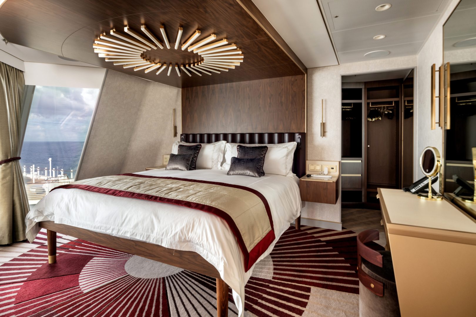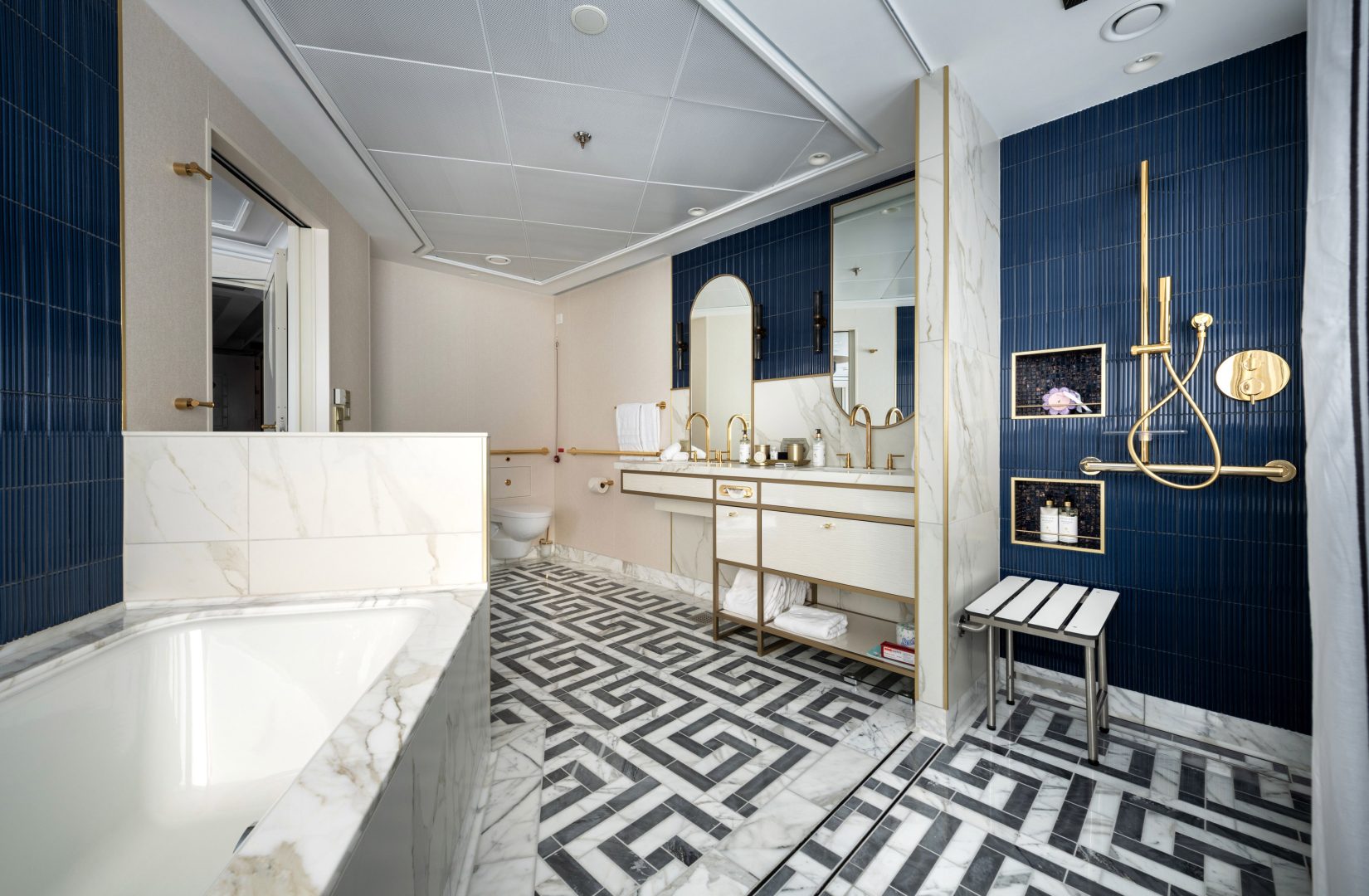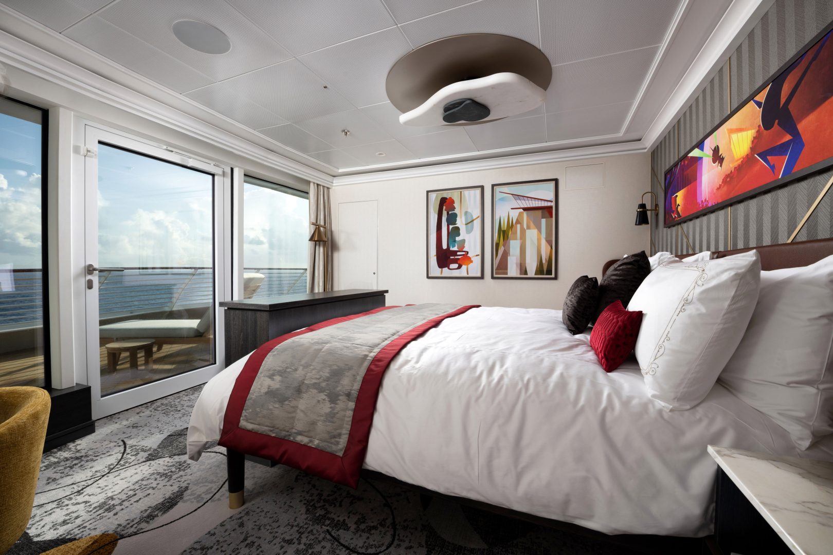 The Destiny Tower Suite honors the mighty legacy of Iron Man with a luxurious take on the sleek, industrial designs of Tony Stark. Located in the ship’s forward funnel, this nearly 2,000-square-foot suite accommodates up to eight guests and offers incredible views through an expansive two-story window; designated areas for eating, sleeping and playing; and other perks like a full kitchen and private ensuite elevator. (Kent Phillips, photographer)