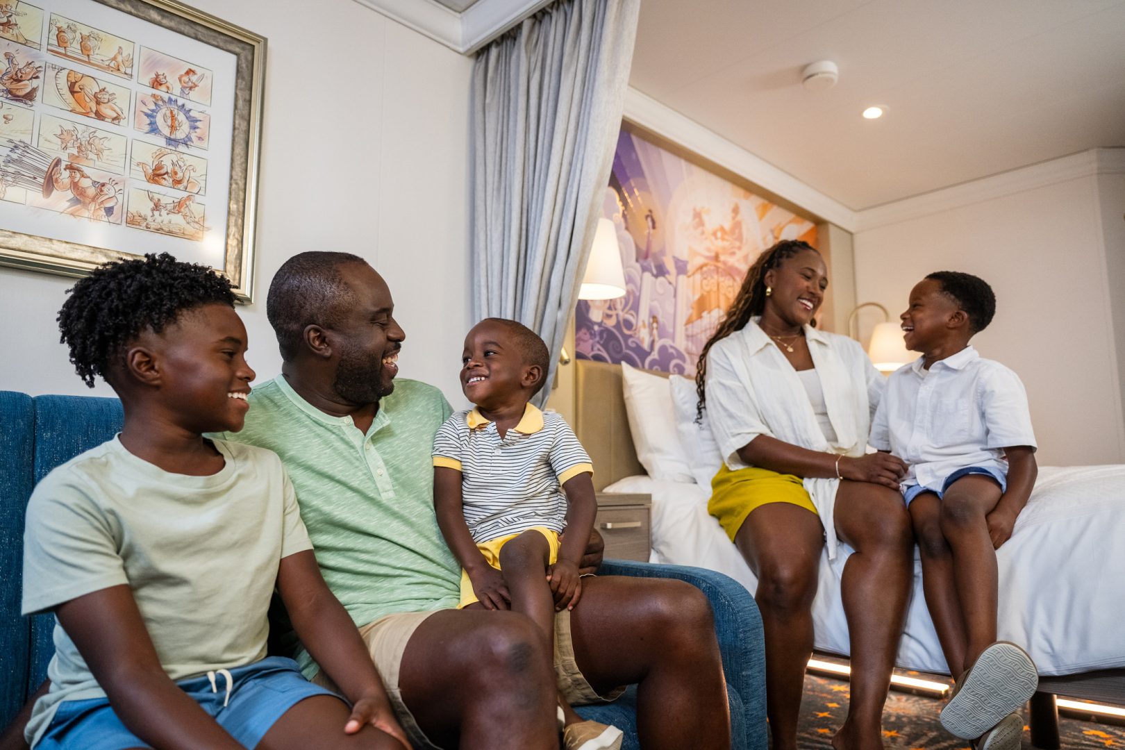 With luxurious accommodations that embrace the duality in every great story, a hero’s welcome awaits guests aboard the Disney Destiny. Each stateroom showcases custom artwork depicting the epic journeys of famous Disney legends and includes features that uniquely meet the needs of families. (Disney)