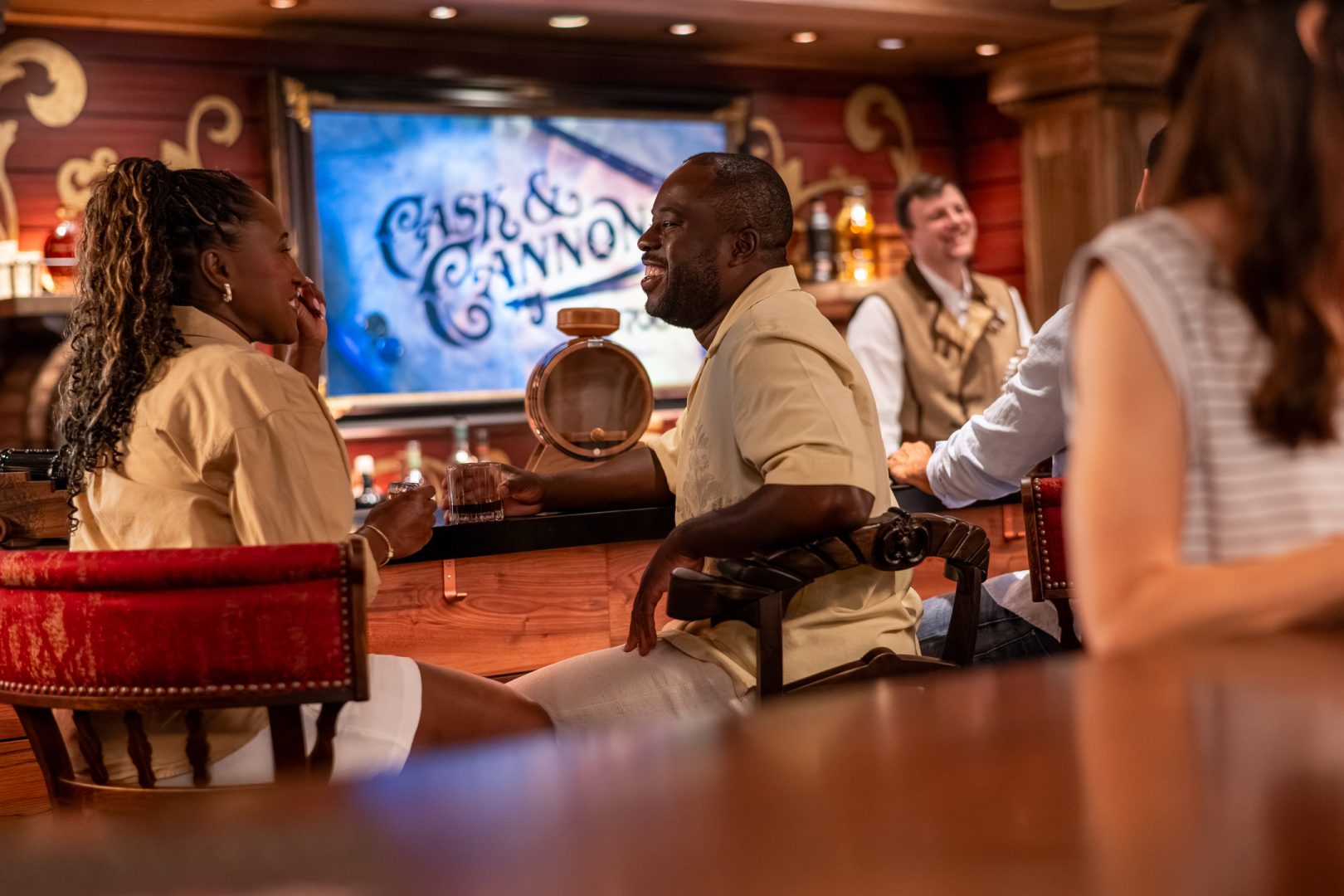At Cask & Cannon aboard the Disney Destiny, guests join the ranks of the “Pirates of the Caribbean” for an evening of revelry, recreation and — of course — rum. Inspired by the iconic characters and scenes from the beloved Disney Parks attractions around the world, the new pub offers an extensive menu of rare, specialty and vintage rums and a selection of “bootlegged” brews developed specially for the venue. (Disney)