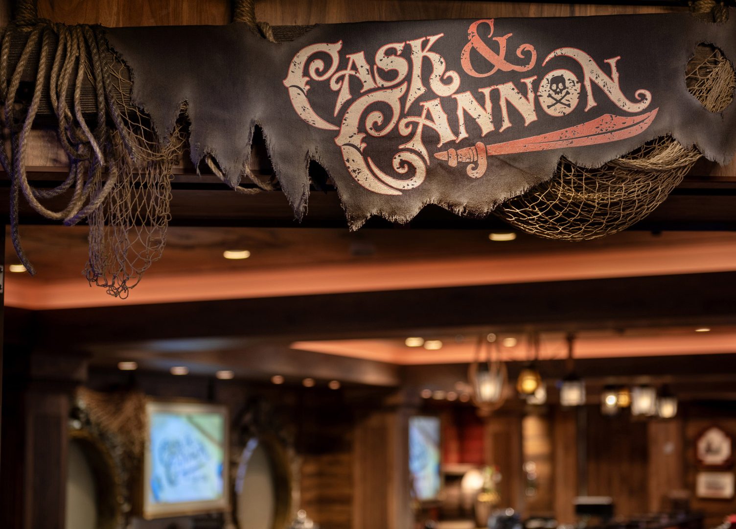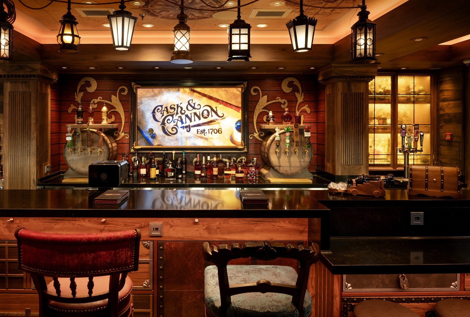 At Cask & Cannon, guests join the ranks of the “Pirates of the Caribbean” for an evening of revelry, recreation and — of course — rum. Inspired by the iconic characters and scenes from the beloved Disney Parks attractions around the world, the new pub is an eclectic yet cozy watering hole furnished with treasures “acquired” (read: pillaged and pilfered) during the pirates’ many voyages around the globe. Visiting buccaneers can regale one another with tales of their own high seas’ adventures, cheer and jeer during live televised sporting events, and indulge in an extensive menu of rare, specialty and vintage rums and a selection of “bootlegged” brews developed specially for the venue. (Steven Diaz, photographer)