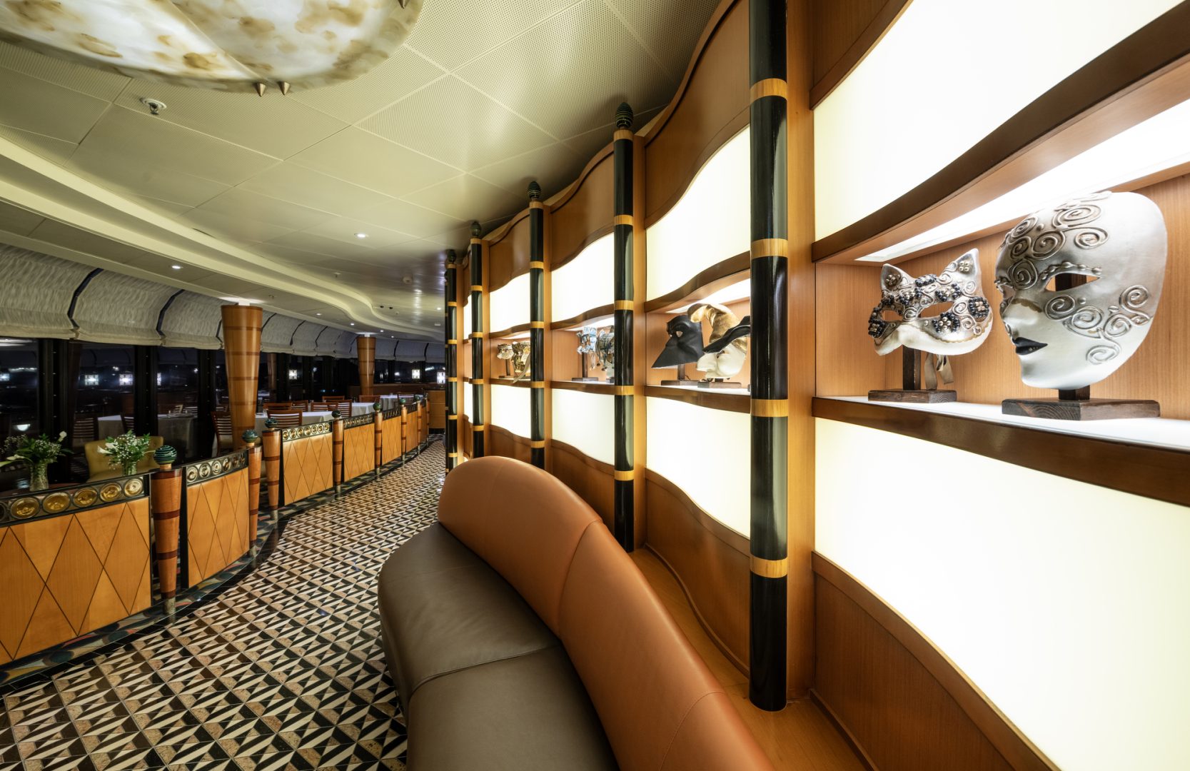 Just before you enter Tiana’s Place, you’ll be met with the French Quarter Lounge, a New Orleans-inspired watering hole exclusive to the Disney Wonder where guests can kick back with special libations and plenty of jazzy live entertainment. (Ken Phillips, photographer) ©Disney