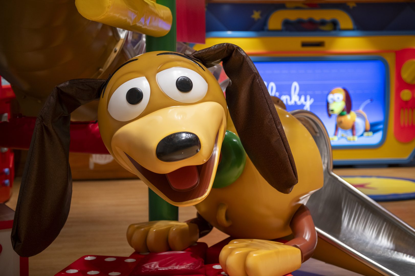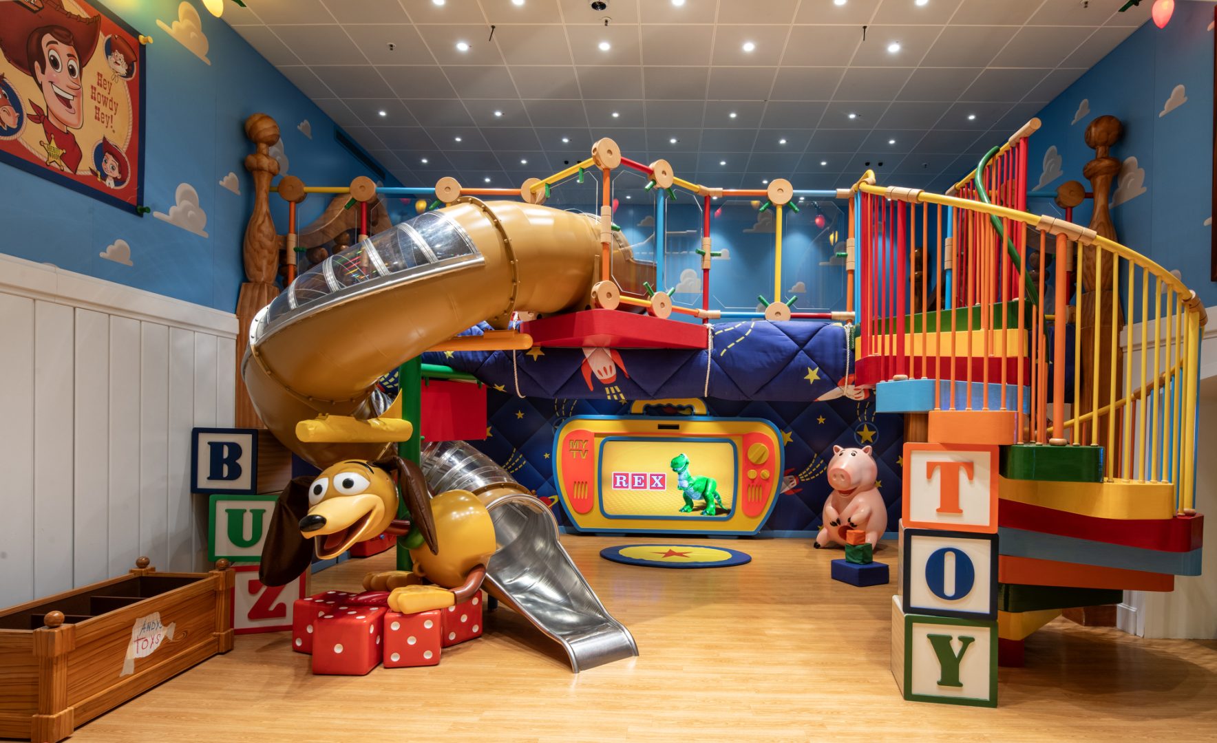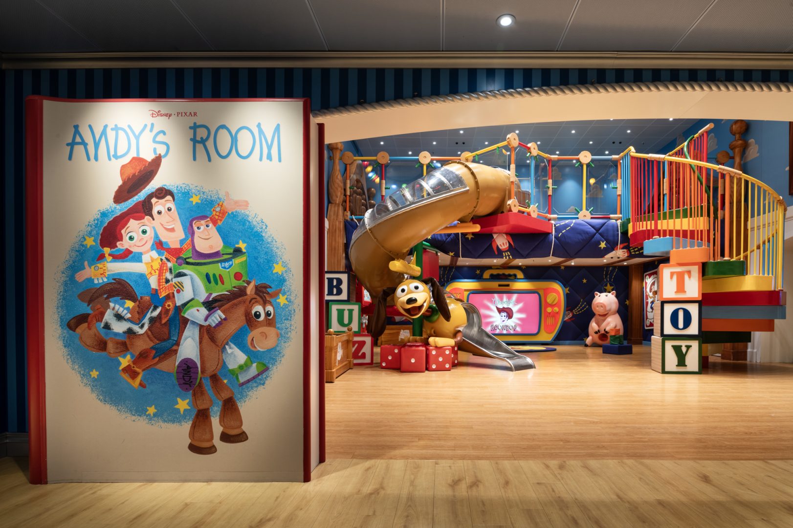In the vibrantly colored Andy’s Room, the world of the Disney and Pixar “Toy Story” films comes to life. Kids experience the feeling of being toy-sized as they play among larger-than-life characters from the animated film. (Kent Phillips, photographer) ©Disney