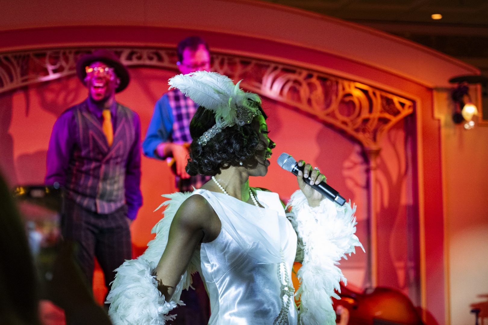 At Tiana’s Place onboard the Disney Wonder, guests are treated to a celebration of New Orleans dining and entertainment inspired by Princess Tiana in the Disney animated feature, “The Princess and the Frog.” Live music is performed on the main stage, with rhythmic, toe-tapping notes of jazz, swing and blues setting the tone for the French Quarter supper club atmosphere. (Amy Smith, photographer) ©Disney