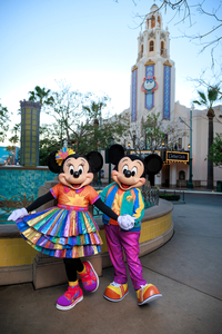 To celebrate 25 years of Disney California Adventure park in Anaheim, Calif., Mickey Mouse and Minnie Mouse will debut special attire inspired by when the park first welcomed guests with golden possibility. Guests can meet Mickey and Minnie in these vibrant new looks on Buena Vista Street starting Feb. 6, 2026, for a limited time, during the Disneyland Resort 70th Celebration. (Christian Thompson/Disneyland Resort)