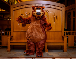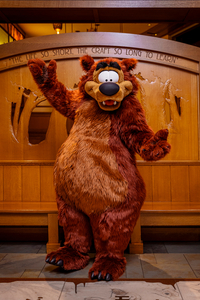 To help celebrate the 25th anniversary of Disney’s Grand Californian Hotel & Spa in Anaheim, Calif., Humphrey the Bear will make his debut at Donald’s Tales of Adventure dinner buffet at Storytellers Cafe at Disneyland Resort, beginning Feb. 6, 2026. Guests can find this mischievous, snack-loving grizzly bear alongside Donald Duck and other Disney characters during this campfire-style barbecue buffet located at the award-winning hotel. (Christian Thompson/Disneyland Resort)