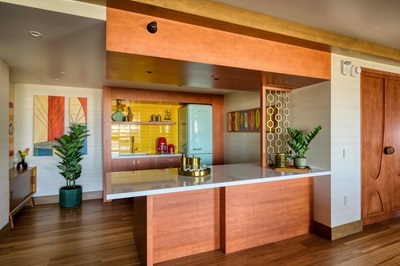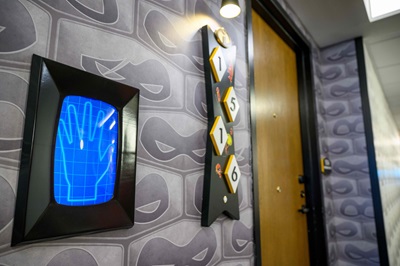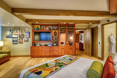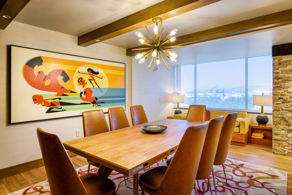 In summer 2025, Pixar Place Hotel at the Disneyland Resort in Anaheim, Calif., will add two new, two-bedroom themed premium suites, opening new doors into the worlds of Disney and Pixar’s “Coco” and “The Incredibles.” The Incredibles Suite will have a mid-century design with a “spy-fi” twist. This suite includes a primary bedroom for the Parr parents, with a connecting room for Edna Mode designed by Edna herself. Beginning with a hand-scanning prop at the entryway, guests will encounter super-inspired touches and special effects including a spy phone, hidden messages, a secret door and other surprises. (Artist Concept/Disneyland Resort)