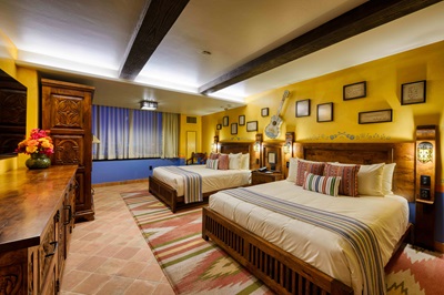 In summer 2025, Pixar Place Hotel at the Disneyland Resort in Anaheim, Calif., will add two new, two-bedroom themed premium suites, opening new doors into the worlds of Disney and Pixar’s “Coco” and “The Incredibles.” The Coco Suite, with Oaxacan-style architecture, will feature terracotta tiling, Mexican artisan quilted and woven pieces, a fireplace, unique handcrafted wooden furniture, and thoughtful touches of hand-painted art. The Coco Suite is inspired by the film’s Rivera family hacienda with many family photos and mementos. (Artist Concept/Disneyland Resort)