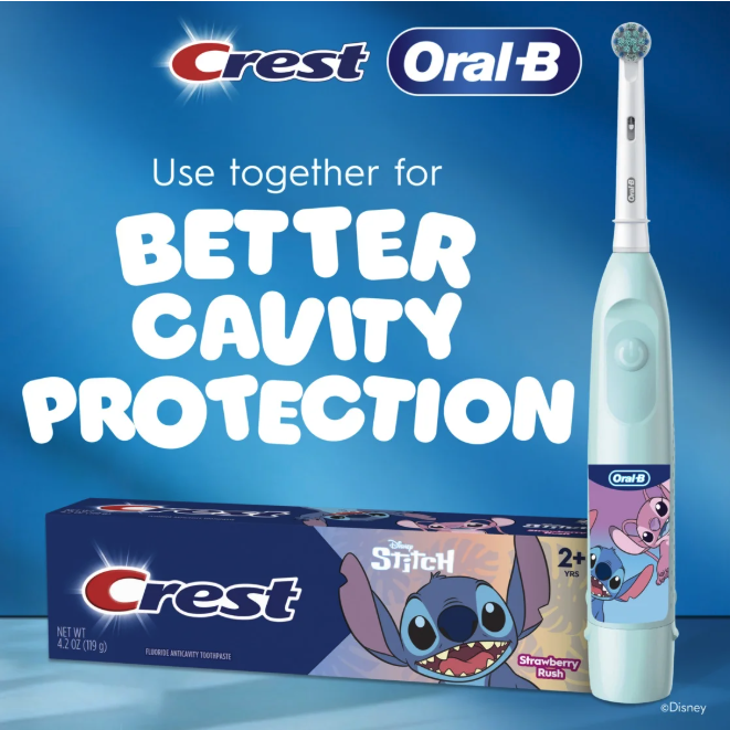 Make brushing teeth more fun this holiday season, with the Oral-B Disney Stitch Electric Battery Powered Toothbrush, and Crest Strawberry Rush featuring Disney Stitch.